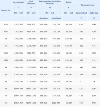 Model NO. R3 Type Inch R Specification 4.763 x 12.7 x 3.97mm Precision Grade P0, P6, P5, P4 Seals Type Zz 2RS Open Service OEM ODM -